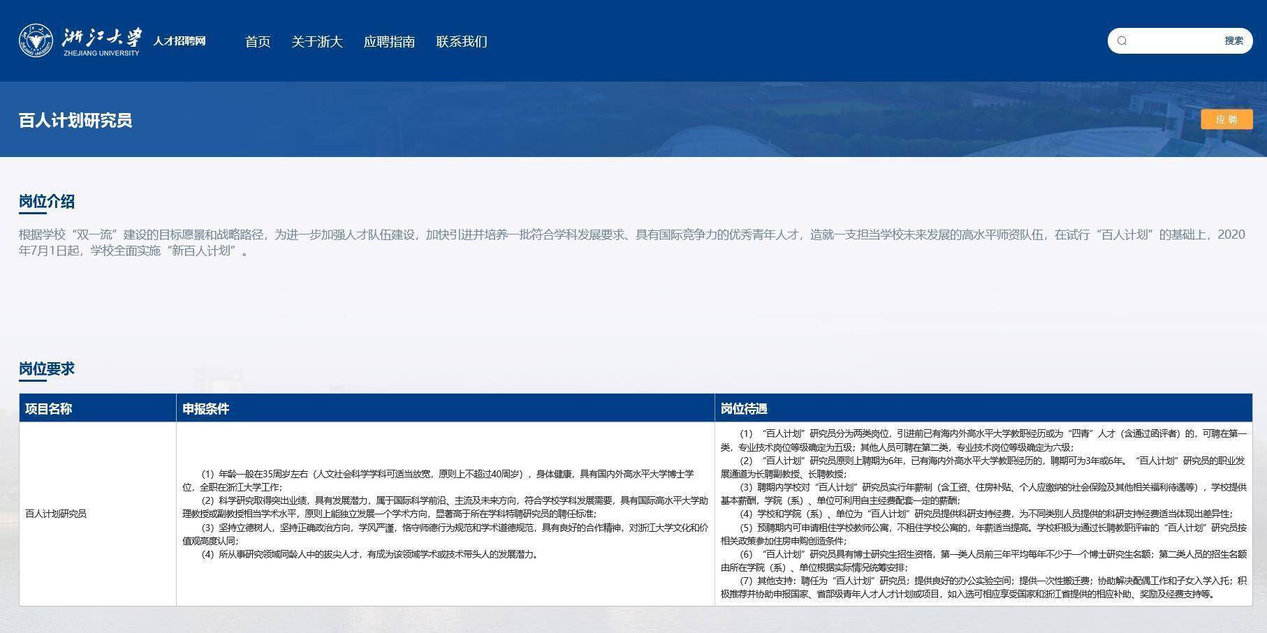 浙江大学百人计划研究员招聘信息(图源浙江大学官网)
